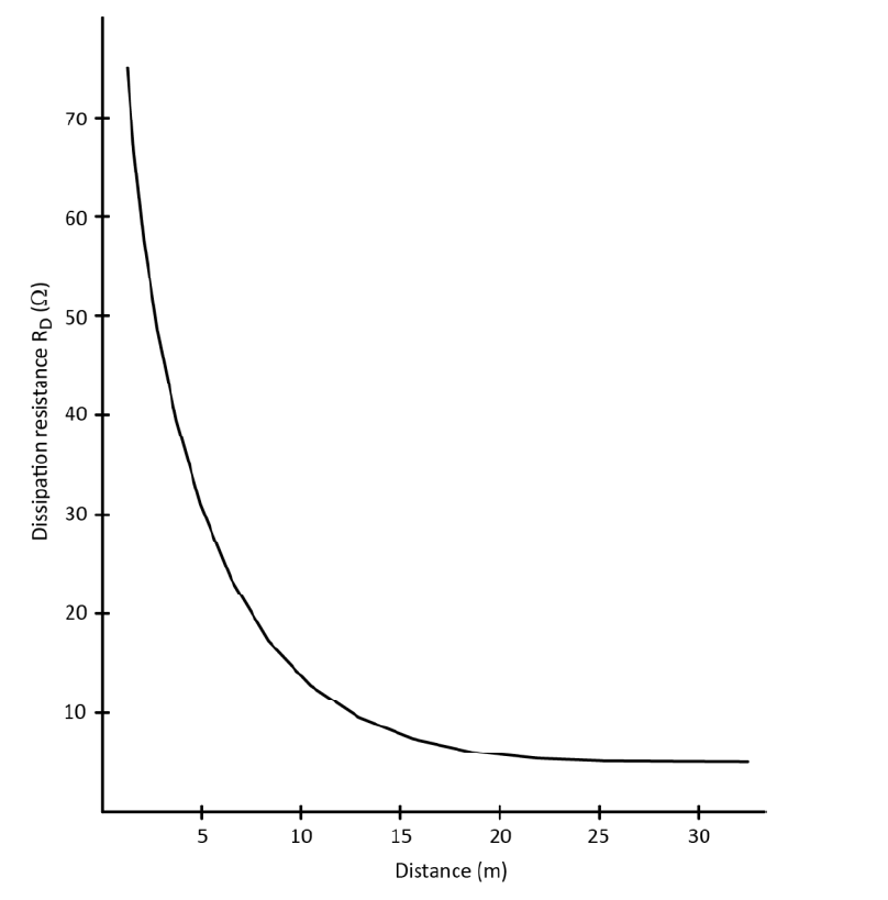 The resistance RL is usually much smaller than the dissipation resistance RD. Thus, usually the earthing resistance is estimated to be equal to the dissipation resistance RD. In the literature, ‘earthing resistance’ usually refers to the dissipation resistance.
