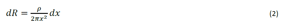 The earth current flowing to such an electrode is assumed to flow radially to the earth. The surface of the hemisphere, as well as all hemisphere cross sections, dx, of the ground, are assumed to be equipotential, and the current lines are therefore perpendicular to these surfaces. Under these conditions the resistance of the hemisphere-ground-sheath of thickness dx and the radius x is expressed as follows (with ρ assumed constant):