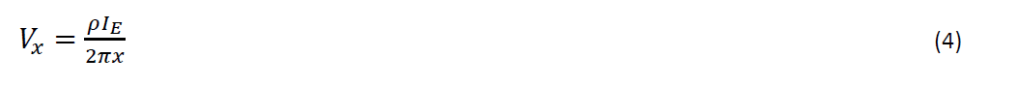 The potential of any point located at distance x from the middle of earth electrode, in which earth current IE flows, can be formulated with the following equation: