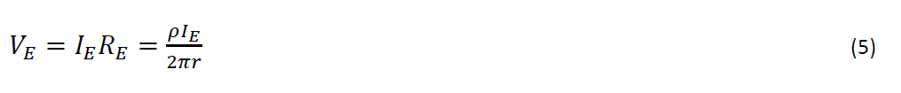 where VE is the earthing voltage, which is equal to the earthing potential (assuming that the potential of the reference earth is equal to zero). The earthing potential can be described as follows: