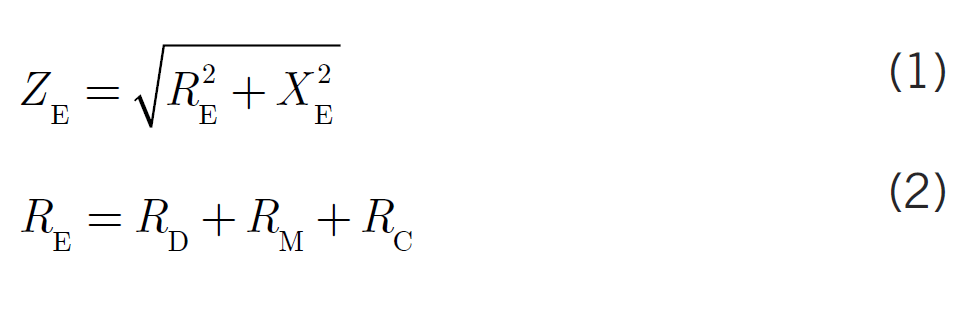 As shown in equation (2), the earth resistance RE is the sum of the dissipation resistance RD, the resistance of the metal conductor that serves as the earth electrode RM and the resistance of the earthing conductor RC, which runs between the main earthing busbar and the earth electrode. The dissipation resistance RD is the resistance between the earth electrode and the surrounding soil. The reactance of the earthing system XE can be expressed as: