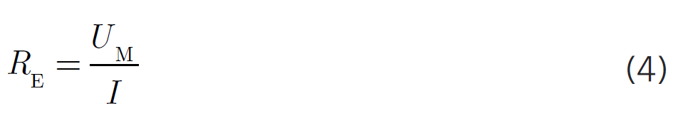 When earth resistance is measured by a method that does not involve current being drawn directly from the supply, the earth resistance RE is computed as the quotient of the measured voltage UM that appears across the earth electrode (and across the meter sockets ES and S) and the measured current I (that flows through sockets E and H). Figure 5 only indicates the basic principle of the complex circuitry within the meter. Usually, the voltage UM and current I are not shown separately and the meter only displays a digital reading of the earth resistance RE. If the AC supply source is a constant-current generator, there is no need to measure the current and calculate the quotient. In this case a voltage meter can be calibrated to display the earth resistance directly.