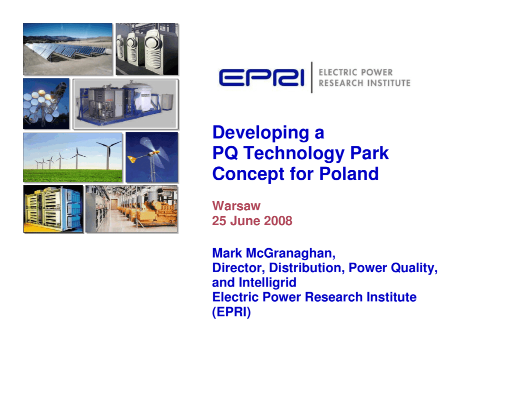 Published by Mark McGranaghan, Director, Distribution, Power Quality, and Intelligrid Electric Power Research Institute (EPRI), Warsaw June 25th, 2008