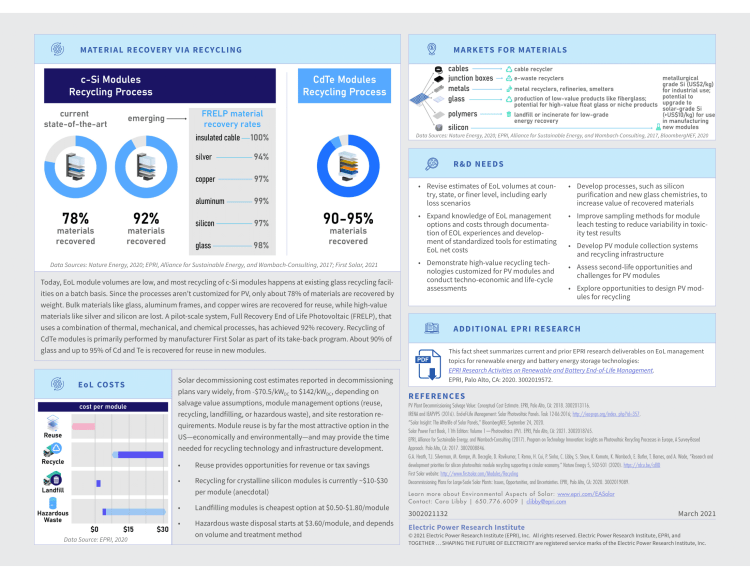 SOLAR PHOTOVOLTAICS END- OF-LIFE MANAGEMENT Posted byPQBlogMarch 24, 2021March 24, 2021Posted inRenewable GenerationTags:EPRI Published by EPRI (Electric Power Research Institute), March 2021 EPRI Solar Photovoltaics _ End-of-Life Management InfographicDownload Related Published by PQBlog Electrical Engineer View more posts