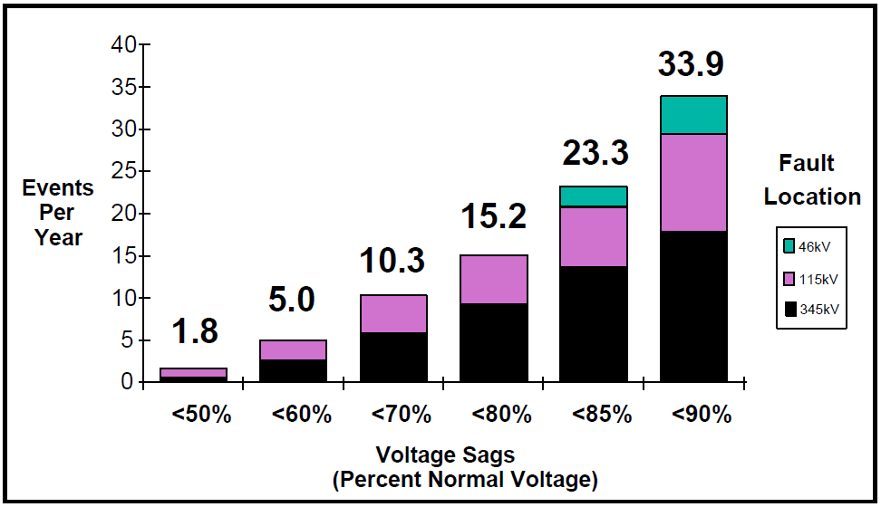Voltage sags are the most important power quality variation affecting many types of industrial customers. As industrial processes have become more automated, the equipment has become increasingly sensitive to these momentary undervoltages. If a single piece of equipment in the process is affected by the voltage sag, the entire process can be interrupted.