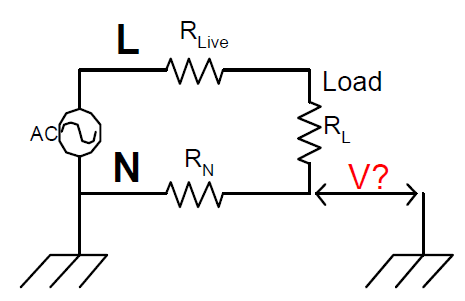 As seen in Figure 2, every wire has finite impedance, therefore the voltage on the end of the load connected to neutral wire is not zero. The higher the current consumption and the smaller the gage of the wire, the higher the voltage on the neutral end of the load. If the neutral end of the load is connected to ground wire by mistake, then the ground at that point would be under voltage. In such scheme, the ground end of the power cable is then connected to the neutral at the power outlet further adding to the problem and complicating the situation. Since the current consumption in most tools is seldom continuous – it peaks whenever a motor or other actuator starts – the parasitic EOS voltage on ground may be present only during these times, further complicating diagnosis.