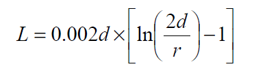 This phenomenon deserves special considerations for high frequency signals. Though mostly attributed to ICs and PCB layout issues, ground bounce is a significant factor for the factory-scale signals. This paper by Phil King, Agilent Technologies6 provides adequate background of the phenomenon of ground bounce. In short, when ground wire has substantial impedance at high frequencies, current passing through this wire from noise generating equipment to ground produces voltage across this wire thus floating what was supposed to be ground of the tool – see Figure 5. According to calculations in this paper 7 (V. Kraz, P. Gagnon, How Good is Your Ground) this voltage may reach several volts. The example below shows the case of long grounding wire. Inductance of a straight wire at high frequencies can be calculated as
