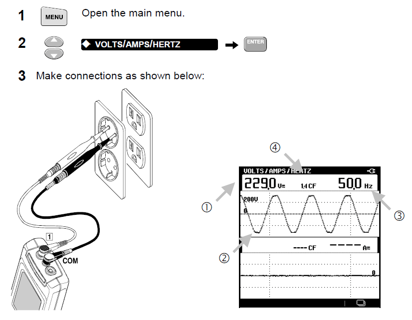 Determine whether the voltage level, voltage waveform, and frequency from an outlet are correct.