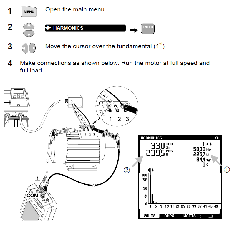 - Look at the THD reading. In general, the Total Harmonic Distortion of the voltage supplied to an induction motor should not exceed 5%.