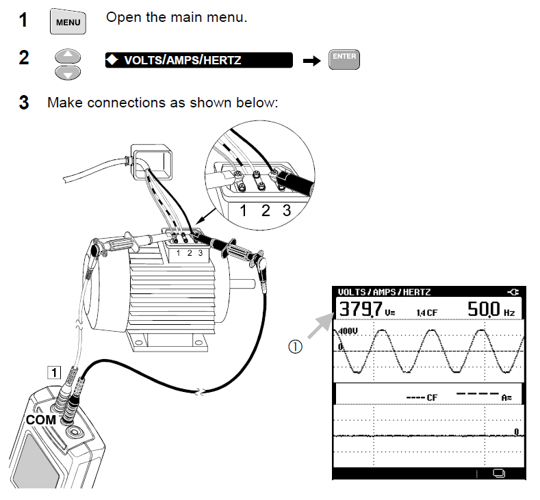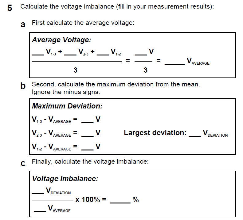 - Write down the voltage reading of phase 1 to phase 3 (V1-3).