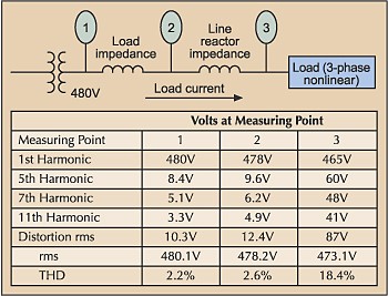 Thinking about the possible detrimental effects of a large amount of voltage distortion on this nonlinear load, you have to remember that the load itself causes this distortion. Voltage distortion caused by normal operation isn’t detrimental to operation of the load.