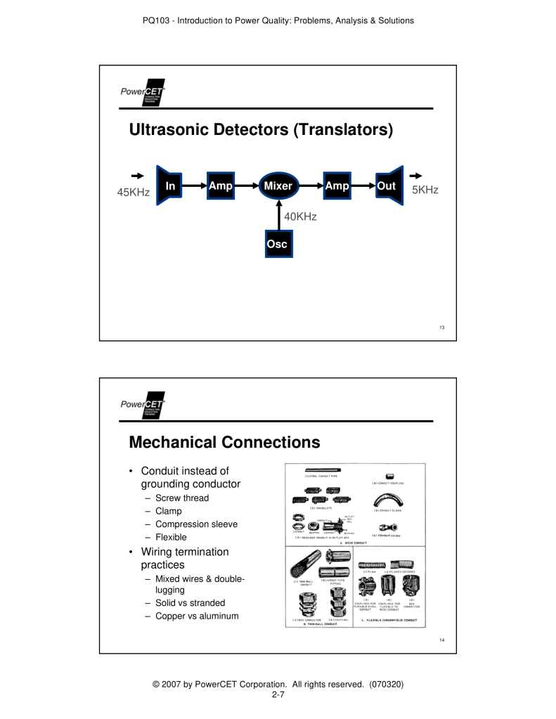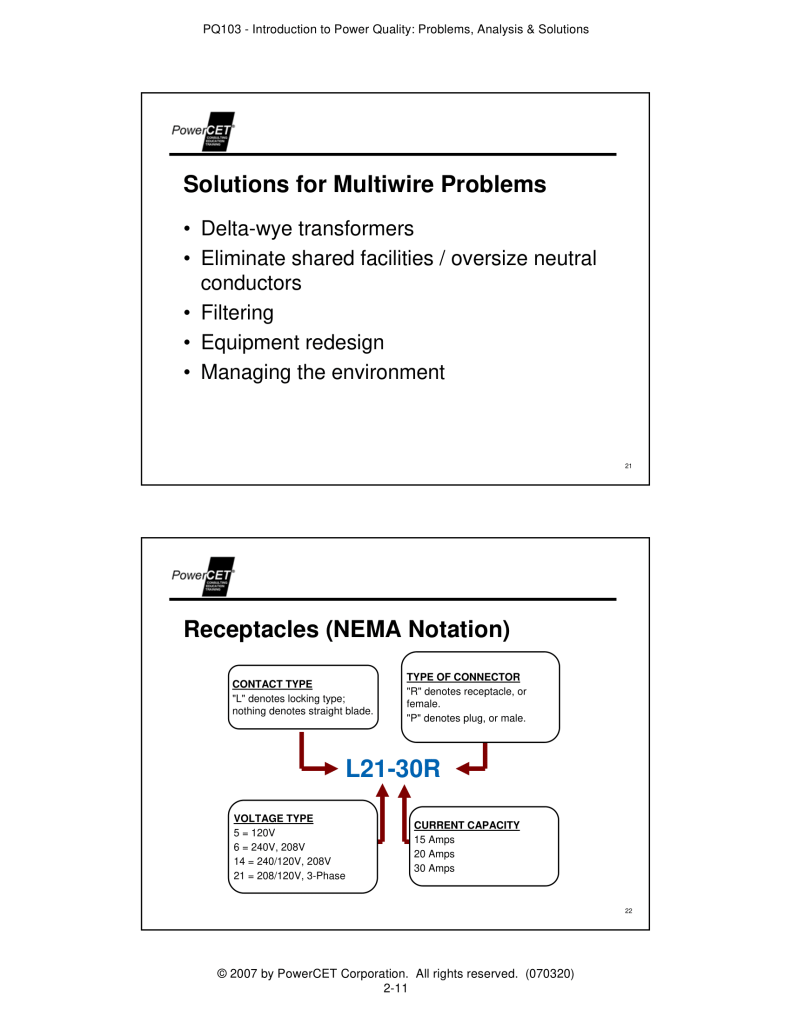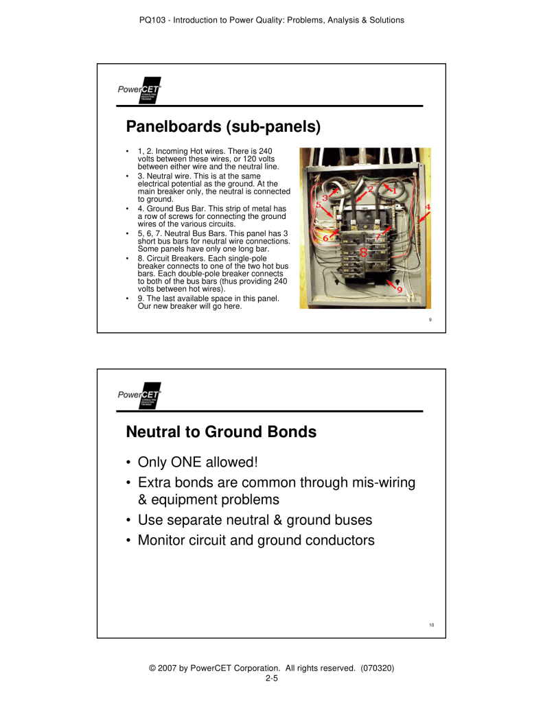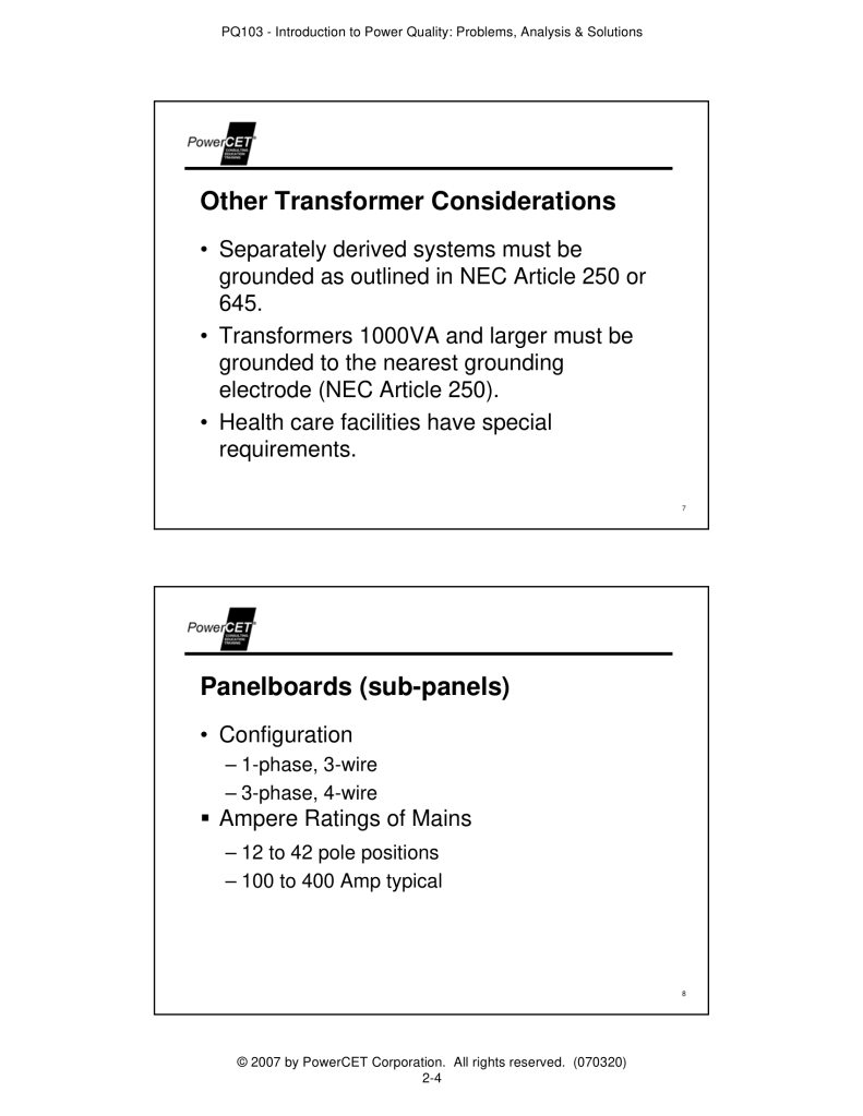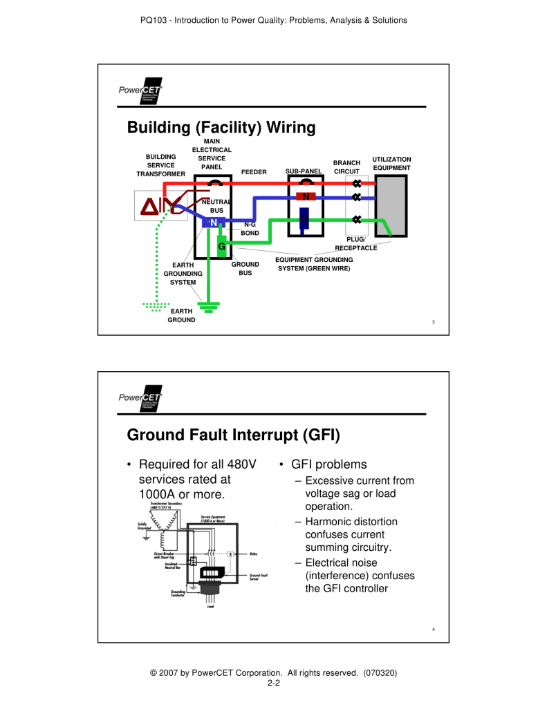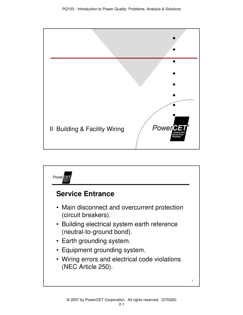 Published by PowerCET® Corporation, Course: PQ103, 2007. Introduction to Power Quality: Problems, Analysis & Solutions – Building and Facility Wiring.