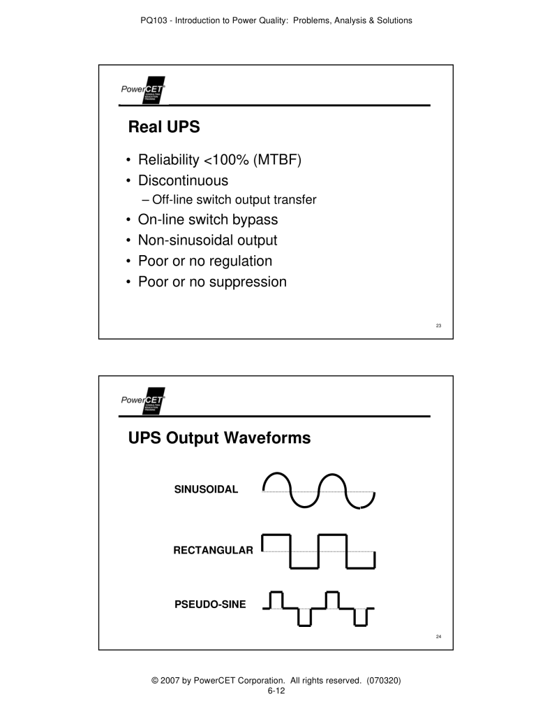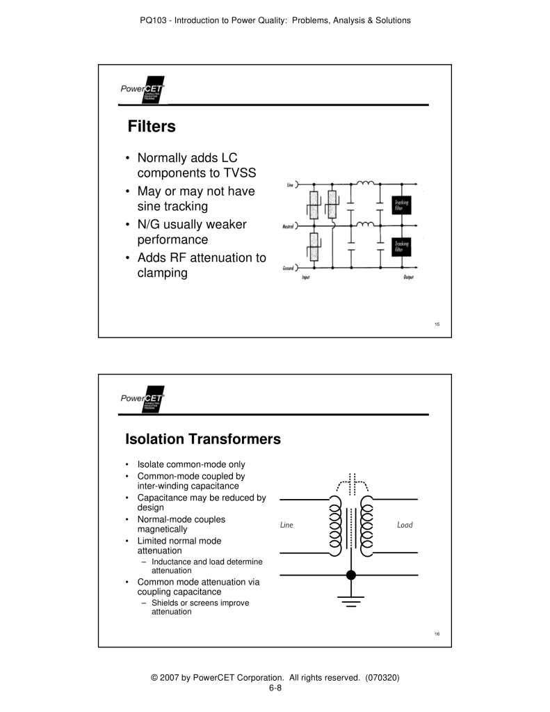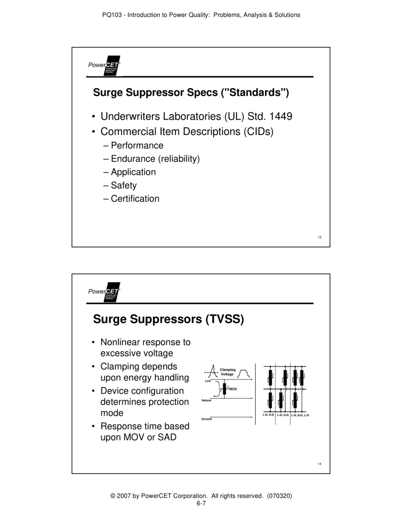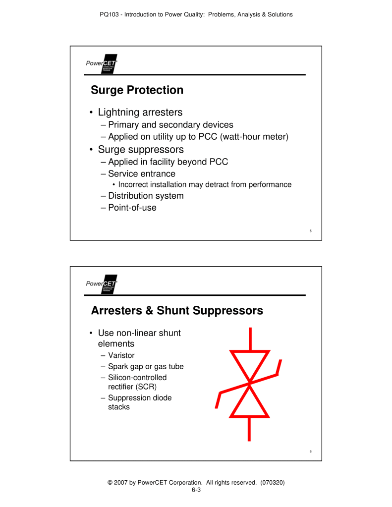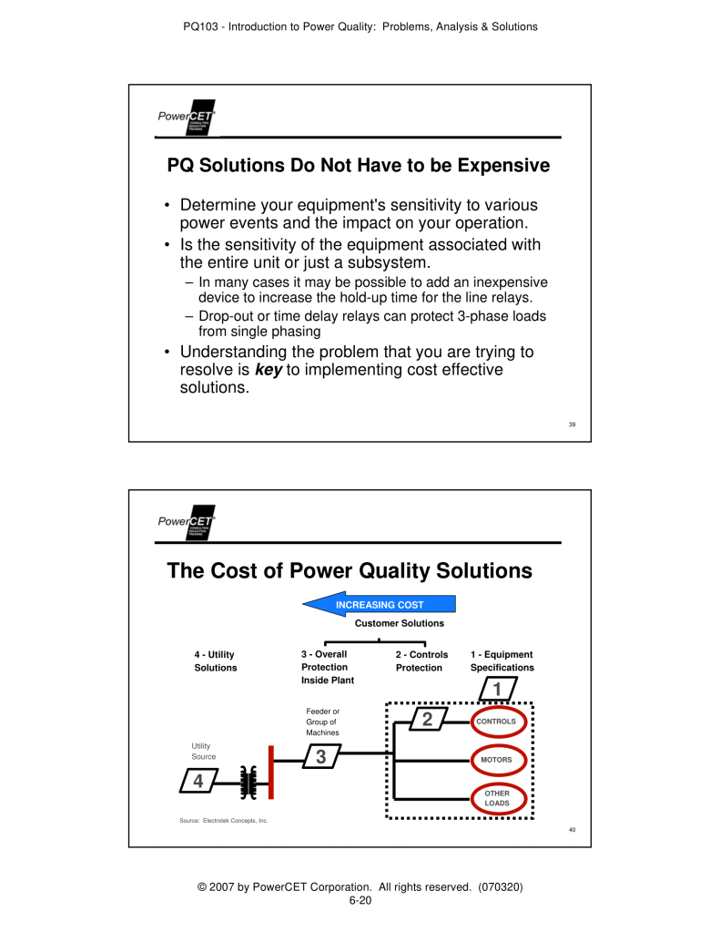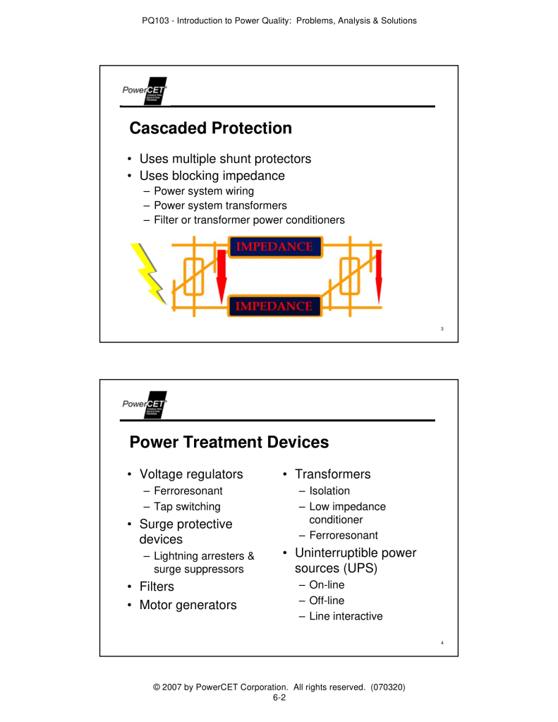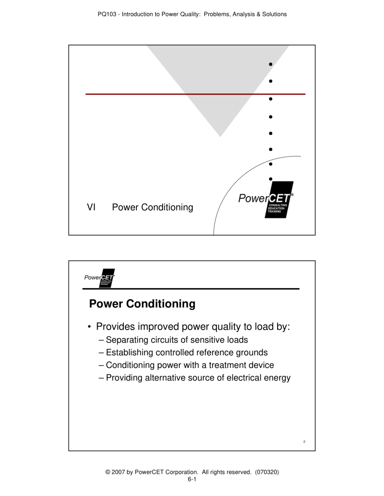 Published by PowerCET® Corporation, Course: PQ103, 2007. Introduction to Power Quality: Problems, Analysis & Solutions – Power Conditioning.