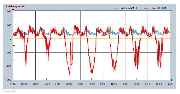 Figure 3 – Typical load profile change in a transformer station in a rural area (LEW-Verteilnetz GmbH) from 2003 to 2011