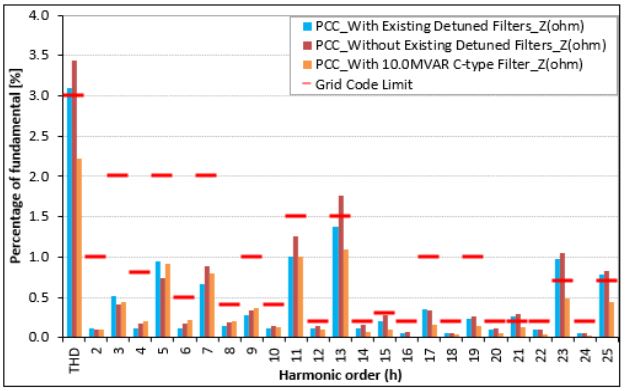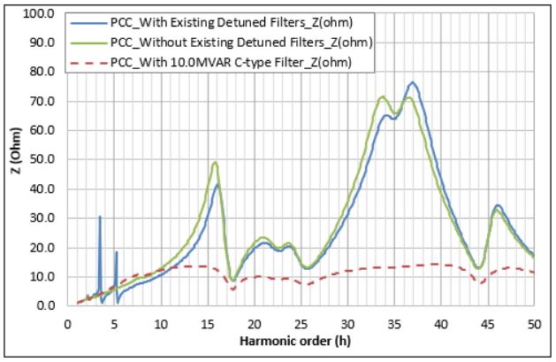 - The existing detuned harmonic filters were not able to dampen the high order harmonic impedances.
