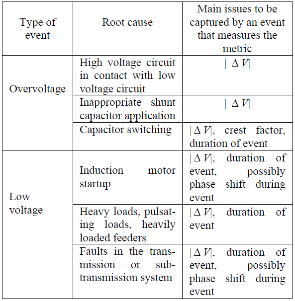 Table I Some issues in voltage sag and overvoltage events in primary distribution systems