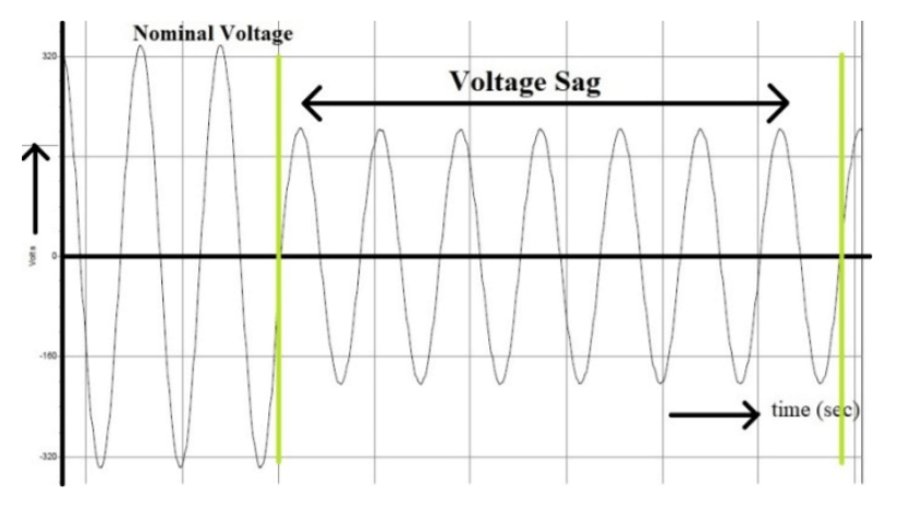Voltage sags are thought to be responsible for between 92–98 percent of all outages caused by power supply problems [1]. As a result, it’s critical to precisely analyze the impact of voltage sags. In the conventional sag characterization technique, voltage sags are characterized by their magnitude and duration. During the sag, the magnitude is defined as a percentage of the remaining voltage (as shown in Figure 1). The duration of the sag in this example is the time between the start and end of the sag. In recent years, one of the most critical concerns that electrical engineers have been aware of is power quality. Various power quality issues, such as voltage sags, voltage distortions, voltage imbalances, and voltage fluctuations, are frequent in power systems, wreaking havoc on generators, transformers, and industrial and home loads [2,3]. The induction motor is one of the most common industrial loads that are affected by power quality issues. Using low-quality voltage to power induction motors results in additional losses, overheating, and a drop in efficiency.