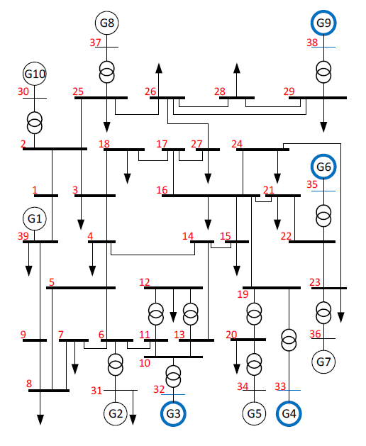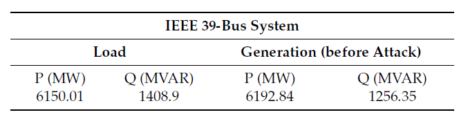 Table 6. Load and generation data of the IEEE 39-bus system.