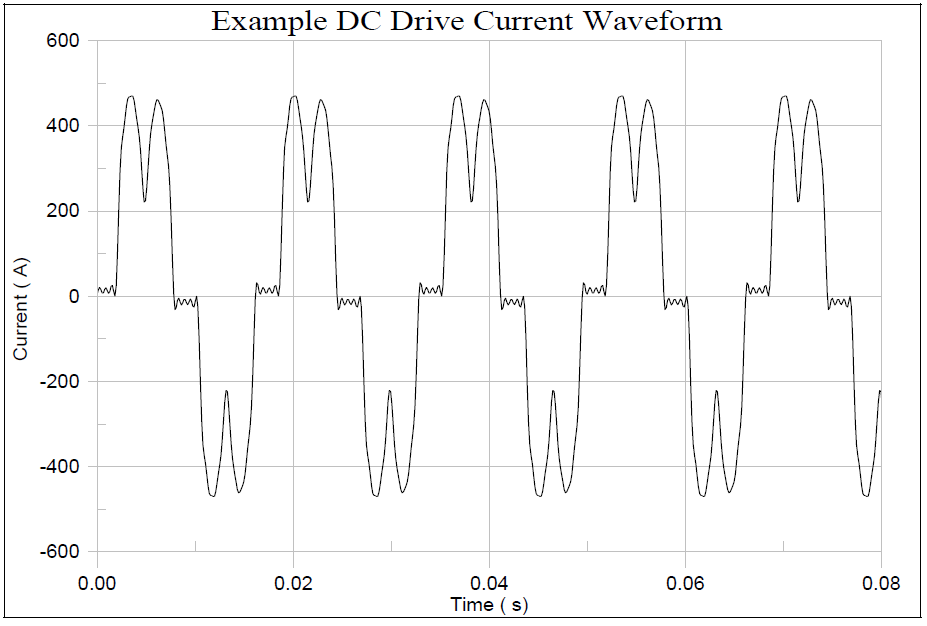 Figure 3 illustrates an example of a dc drive current waveform. This waveform was simulated using Electrotek’s SuperHarmTM program.