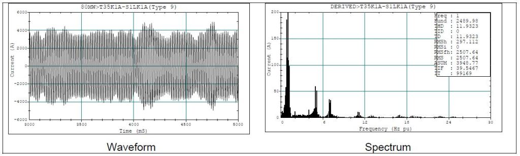 Figure 4 shows the waveform and spectrum of the total current injection into the 500kV transmission system.