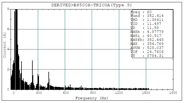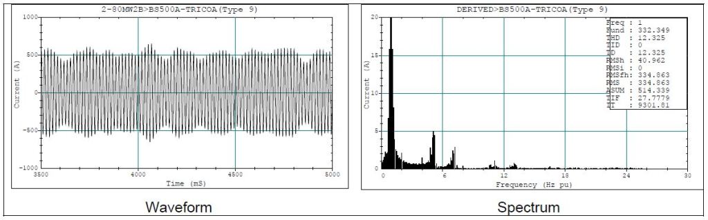 Figure 2 shows the waveform and spectrum of the total current injection into the 34.5kV side of the 150 MVA melt shop supply transformer.