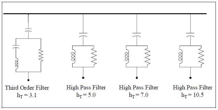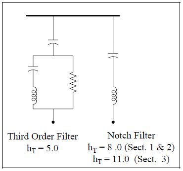 Four different filter options were considered and presented to the utility. The first option was a classic filter design with individual tuned branches at the 2nd, 3rd, 4th, 5th, 7th, and 11th harmonics (Sections 1 and 2). This results in a very expensive design because many branches require damping resistors to avoid high impedance parallel resonances that could excite non-integer harmonic components. Options 2 and 3 both involve the third order filter tuned to the fifth harmonic with a damping resistor to prevent resonance problems. In option 2, a 2nd harmonic filter was included on Section 1 and a 3rd harmonic filter on Section 3 to provide some reduction of these non-characteristic harmonics at the 500kV PCC.