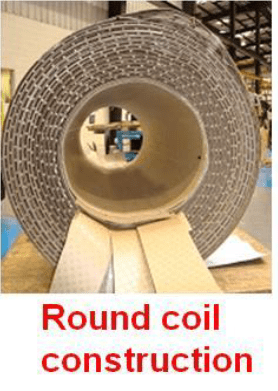 For K-factor rated transformers, PCT routinely utilizes round coil construction with cruciform cores which allow for 360 degree cooling ducts. This approach minimizes the potential for localized heating within the coils since the cooling fluid flows freely throughout the core/coil assembly.
