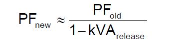 PFnew ≈ PFold / 1 – kVArelease = 0.77 / 1 – 0.20 = 0.9625 = 96%