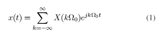 where Ω0 = 2π/T is called fundamental angular frequency and X(kΩ0) is the Fourier coefficient at the kth harmonic which is determined by