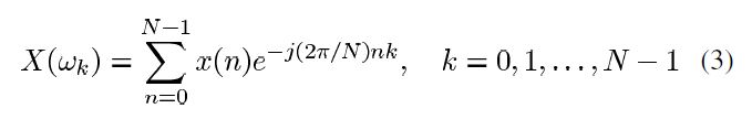 where ωk = (2π/TsN)k = (2π/T)k, X(ωk) is the so-called spectrum of x(n). Here x(n) is assumed to be one cycle of a periodical signal. In other words, the signal is supposed to precisely repeat itself for every N point. The angular frequency resolution of the spectrum is determined by the length of the signal as