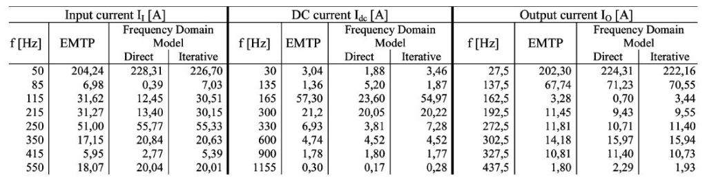 In conclusion, no particular difficulties arise in extending the direct injection method to take into account interharmonics. The direct injection method presents the well-known advantages of speed, extendibility to unbalanced cases and the absence of divergence phenomena. Disadvantages are the poor accuracy and the impossibility of taking into account interaction between converters.