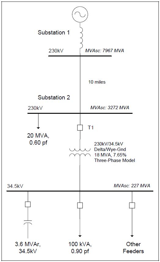 The accuracy of the system model was verified using three-phase and single-line-to-ground fault currents and other steady-state quantities, such as transformer, load, and capacitor bank rated currents and voltage rise.
