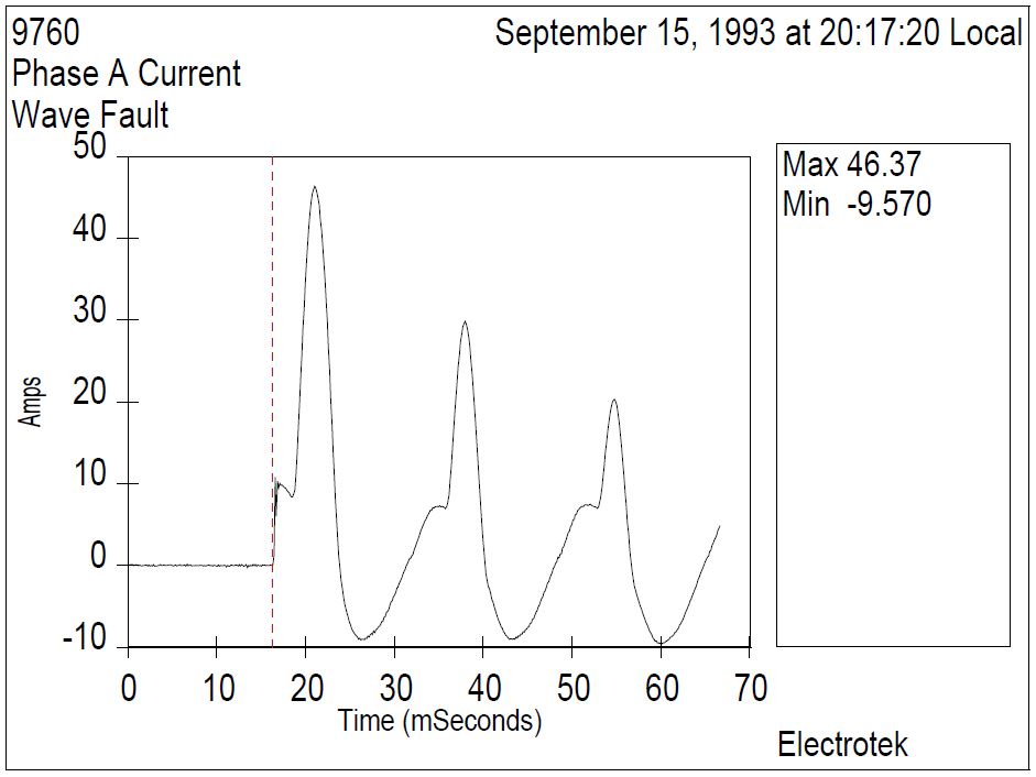 Figure 2 shows an example measured current waveform on a 12.5kV feeder during a transformer energizing operation.