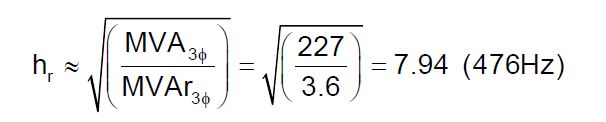 The resonant frequency for the 18 MVA transformer and the 3.6 MVAr capacitor bank may be approximated using the following expression: