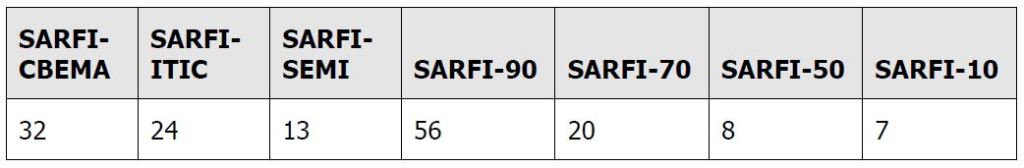 Voltage variation indices may be used to assess the service quality for a customer. One commonly used benchmarking value is known as SARFI, which stands for System Average RMS Variation Frequency Index. SARFI represents the average number of specified rms variation measurements that occurred over the assessed period. For example, SARFI70 is a measure of the number of voltage sags that can be expected with a minimum voltage below 70%. Another popular use of SARFI is to define the threshold as a curve. For example, SARFICMEBA would represent the number of rms variation events outside the commonly used CBEMA voltage tolerance envelope. The CBEMA curve was originally developed by the Computer Business Equipment Manufacturers Association. The curve was first published in IEEE Std. 446-1995.