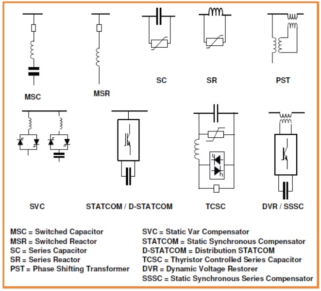 The phase shifting transformers (PSTs) are utilized at the distribution systems to modify the phase angles of the grid voltage, thus improve the harmonic properties. The static var compensators (SVCs) are a combination of thyristor controlled reactors and thyristor switched capacitors, which are widely used in distribution and transmission systems to dynamically modify the reactive power of the network, improve system stability and increase network efficiency. With the development of the power electronic devices, and with the advent of insulated gate bipolar transistors (ITBTs), the static synchronous compensators (STATCOMs) are developed, as the upgraded version of SVCs, which are widely utilized in the modern electric power networks and considered as one of the major building blocks of the smart grid. The D-STATCOM is abbreviated for the STATCOM used in the distribution system [16, 17, 20].