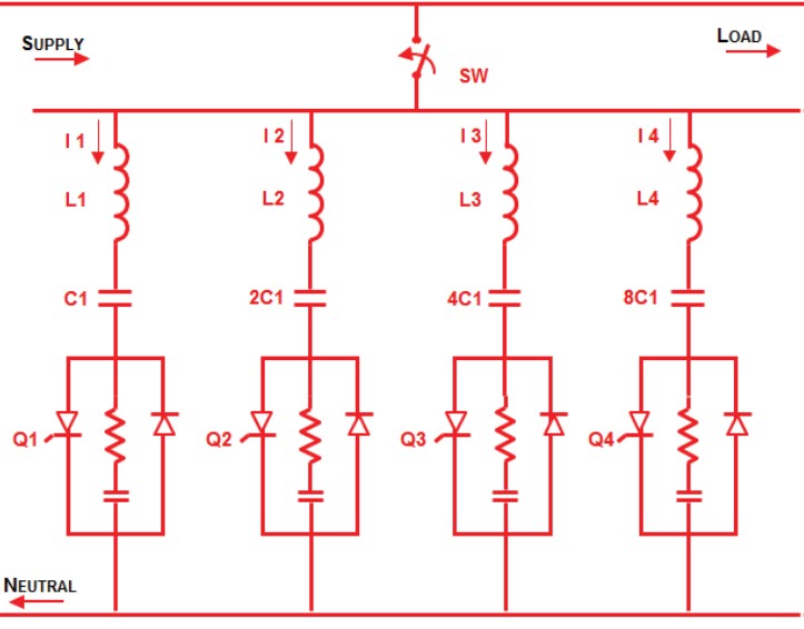 Besides, switching is synchronized to occur at peak of the grid voltage, i.e., the zero crossing of the capacitor current, when voltage across the power electronic switch is nearly zero. As a result, the transients associated with capacitor switching are eliminated. The micro-processor controller updates the capacitor switching patterns up to every half-cycle and sets the optimum firing sequences. Notably, the de-tuning reactors are inserted in series with the capacitors to eliminate undesirable system resonance.