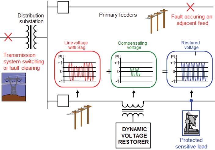 Fig.12 shows the diagram of the adaptive/static var compensator, which is an economical, distribution var compensator that provides dynamic reactive compensation and power-factor correction. By using the AVC systems, the problem of voltage fluctuations can be reduced, system stability and reliability can be enhanced, and the system capacity is increased, and light flicker is eliminated. The AVC can enable problem loads to coexist on the same feeder as more sensitive loads, eliminating the need for separate feeders [16, 17].