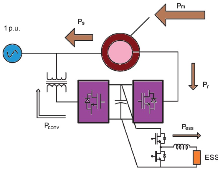 Fig.27 shows the circuit diagram of the supercapacitor energy storage for wind power applications. Notably, there is an increasing interest in both large scale storage system at transmission level, and smaller scale dedicated storage embedded in distribution networks. For large-scale storage, pumped hydro accumulation storage is best-known, which can also be implemented underground. On a decentralized scale storage operations include flywheels, batteries, and possibly in combination with the electric vehicles, fuel cells, the electrolysis and super capacitors [48, 49, 50].