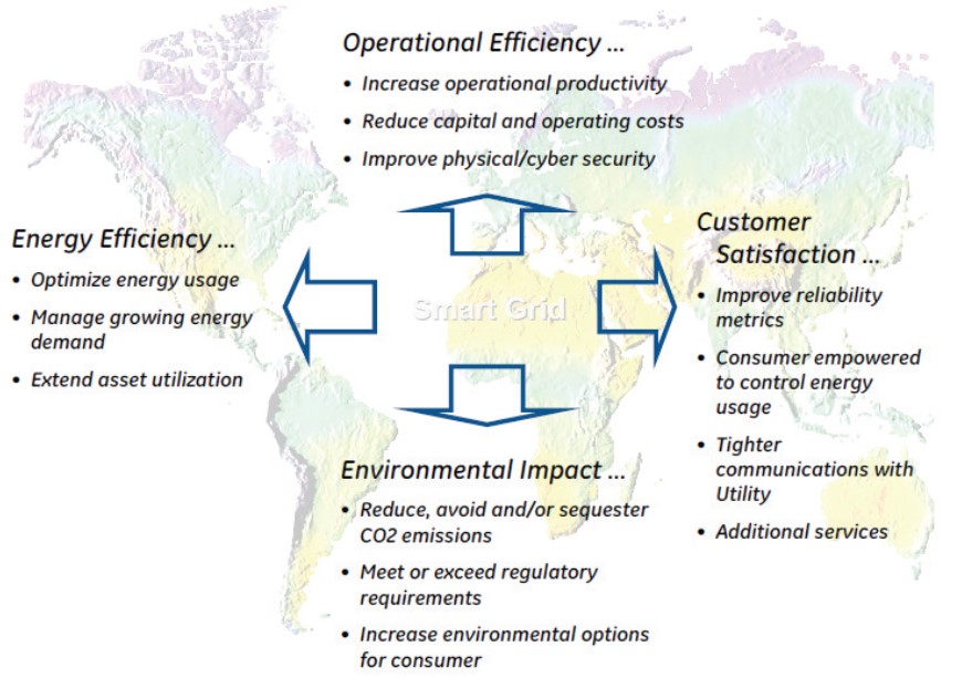 The operational efficiency is improved by the increased operational productivity, reduced capital and operational costs and enhanced cyber security. Customer satisfaction is enhanced by the improved reliability metrics, additional services, and tighter communications with utility. The smart grid technology also has huge impact on the environment protection by the reduction of CO2 emissions.