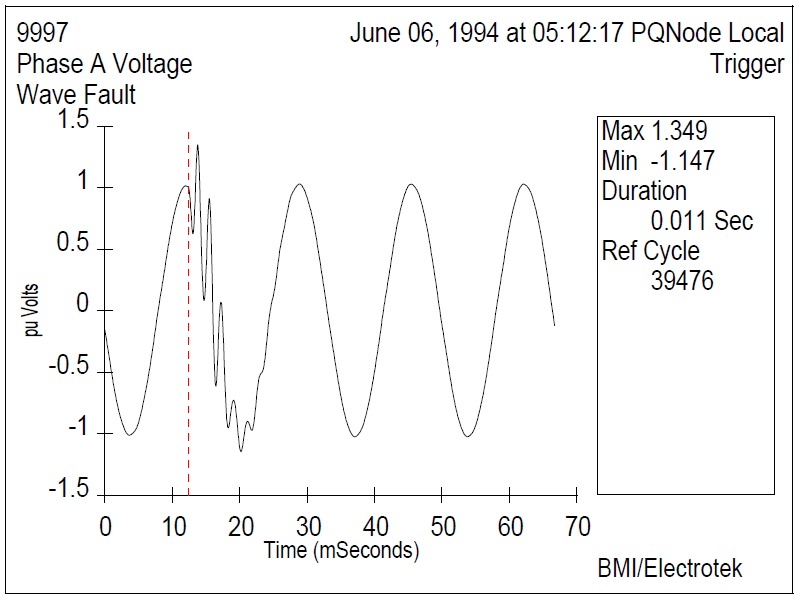Nuisance tripping refers to the undesired shutdown of an ASD (or other power-electronic-based process device) due to the transient overvoltage on the device’s dc bus. Very often, this overvoltage is caused by transmission and/or distribution capacitor bank energization. Considering the fact that many distribution banks are time clock controlled, it is easy to see how this event can occur on a regular basis, thereby causing numerous process interruptions for the customer.