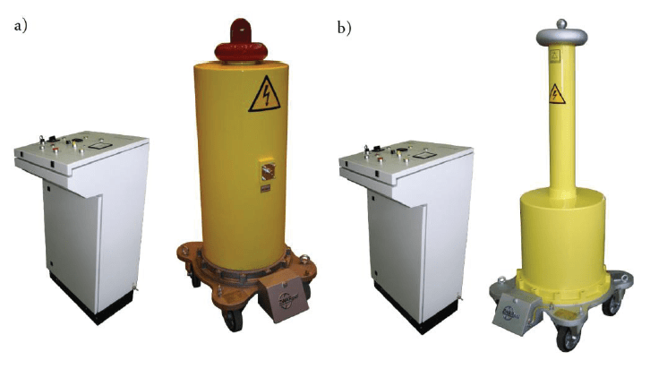 b) in high voltage testing systems to test of dielectric isolation in solid high voltage (Fig. 7b)