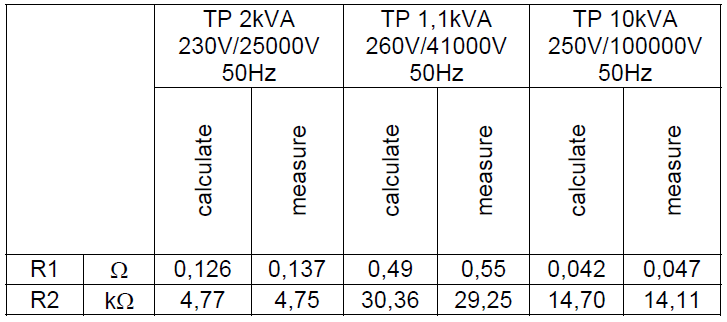 The results of calculations and measurements of parameters of three high voltage test transformers analytically designed on basis of literature [1] and [2] are following.: