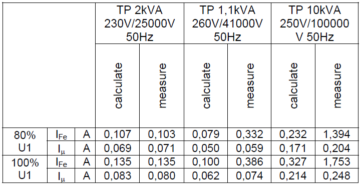 Schedule 2. Effective value IFe and passive value Iμ no-load value current I0.