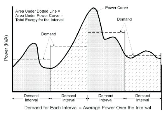 As can be seen from the Figure 1.4 above the demand varies from time to time. The demand is measured over predetermined time interval and averaged out for that interval as shown by the horizontal dotted line.