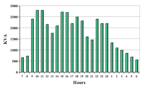 Presenting the load demand of a consumer against time of the day is known as a ‘load curve’. If it is plotted for the 24 hours of a single day, it is known as an ‘hourly load curve’ and if daily demands plotted over a month, it is called daily load curves. A typical hourly load curve for an engineering industry is shown in Figure 1.5. These types of curves are useful in predicting patterns of drawl, peaks and valleys and energy use trend in a section or in an industry or in a distribution network as the case may be.