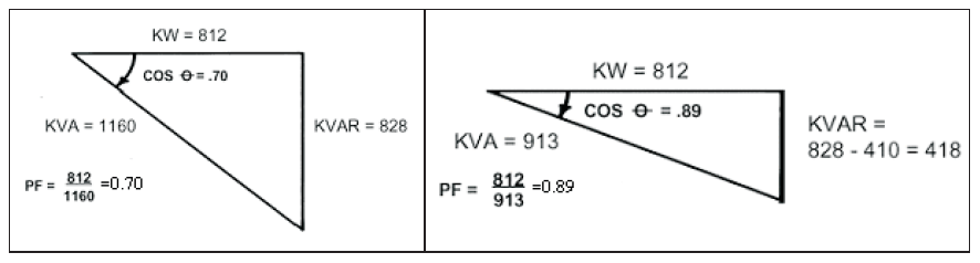 Capacitors are used to correct power factor by causing the current to lead the voltage. When the AC currents are kept in phase with the voltage, operating efficiency of the system is maintained at a high level.