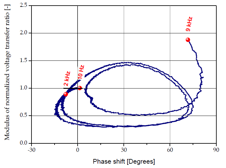 Accurateness of voltage transfer characteristics (magnitude and phase) of VT is a fundamental aspect for identification and measurement of power quality related events in power system. For the investigated VT the voltage transfer ratio and voltage phase shift characteristics have been measured to reveal measurement accuracy problems of power quality assessment in MV systems. Magnitudes versus phase transfer characteristic of VT measured for frequency range typically used in power quality measurement systems (up to 9 kHz) are presented in Fig. 4.