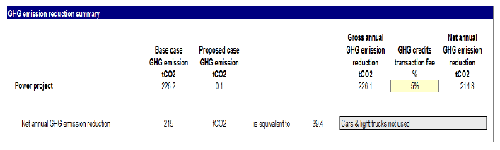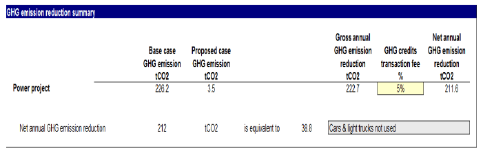 In terms of GHG emissions, the proposed case power system declines the emissions because of the use of clean energy. If calculated as the emissions of 25t carbon dioxide equal to 1t methane and the emissions of 298t carbon dioxide equal to 1t nitrous oxide, the electricity generation efficiency is 31% and the transportation and the distribution losses are 8%, the amount of GHG emissions of generating 1MKWh electricity declines from 226.2t to 3.5t. At the same time, the gross annual GHG emission reduction is 222.7t. What’s more, the net annual GHG emission reduction is 211.6t and the total emission is 4232t when the GHG credits transaction fee is 5% and the project life is 20 years, as shown in Fig.13.
