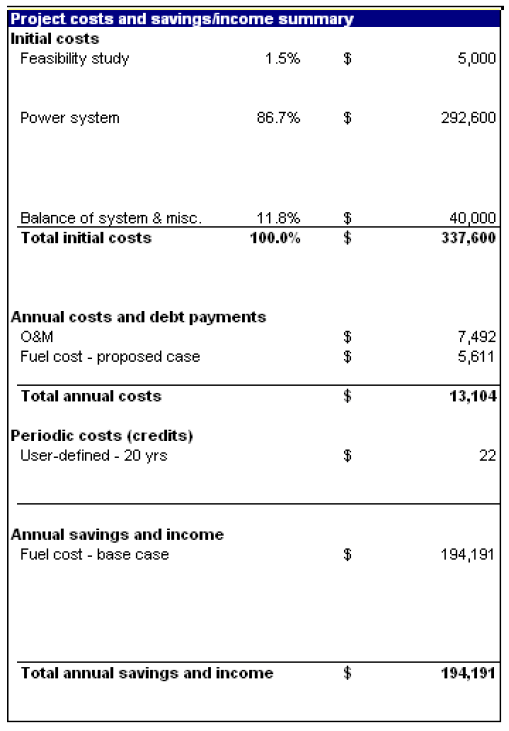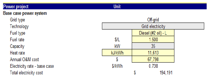 As shown in Fig.3, the base case of power system, which is an off-grid system, its power generation relies on the fuel generator. The fuel rate is 1.5$/L and the total electricity cost is 194191$. In general, it’s not easy for the typical clients to afford to these high fees. They would like to invest in those economical projects. Further more, in the case of the electricity generation efficiency is 31% and the transportation and the distribution losses are 8%, the annual greenhouse gas emissions are 226.2t, which bring much air pollution to the environment.